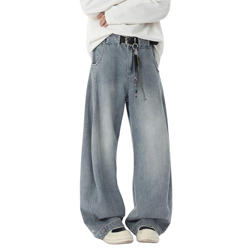 • 【Material】Crafted from a 70% cotton blend fabric, these baggy jeans maintain structured silhouettes while ensuring comfort.Some styles have added metal decorations such as zippers and rivets.