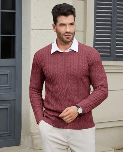 • CABLE KNIT DESIGN - Our mens cable knit sweater features a classic crew neckline, long sleeve, regular fit, cable knit, ribbed cuffs, and hem with twist patterned, solid color. Solid color makes these men's pullover sweaters classic and versatile, and the striped pattern adds extra texture. These pullover sweaters for men are a perfect blend of classic and fashion to show off one's distinctive temperament.