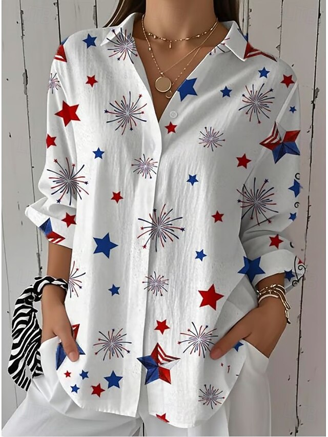 More information about Women's Patriotic Shirt Graphic Flag Star Vintage Tropical Daily Regular Tops Work Daily s Print White Royal Blue Blue Sky Blue