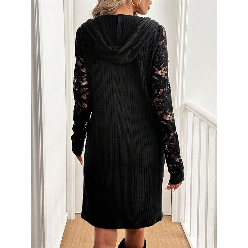 HOT ! Women's Maxi Dress White Lace Wedding Dress A Line Dress Elegant Stylish Casual Vacation Party Daily Loose Fit Plain Long Sleeve Hooded Black Spring Fall Winter