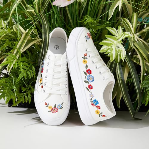 yageyan Womens White Embroidery Canvas Sneakers Low Top Tennis Shoes Womens Causal Sneakers 6