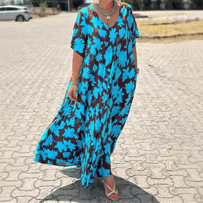 Women's Long Dress Maxi Dress Casual Dress Swing Dress Fashion Outdoor Party Holiday Regular Fit Flower Short Sleeve V Neck Black Blue Summer 6