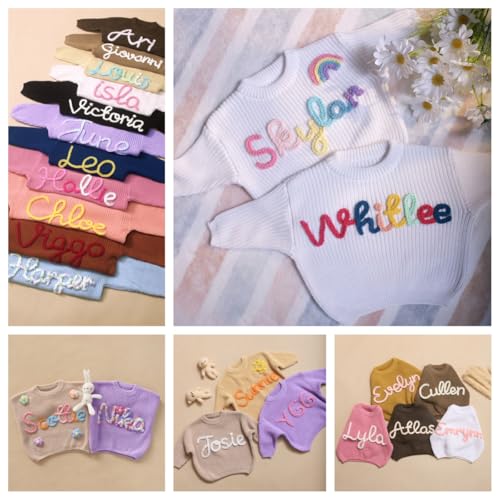 HOT ! Personalized Baby Sweater with Name,Custom Newborn Outfit Girl,Hand Embroidered Baby Clothes,Infant Sweater for Boy Girl,Customized Baby Girl Gifts for Halloween Christmas