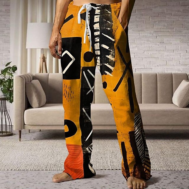 More information about Men's Graphic Pants Trousers Mid Waist Drawstring Elastic Waist Hawaiian Casual Outdoor Holiday Beach Wear Straight Leg Trousers Summer Spring Fall 3D Print Blue Orange Green