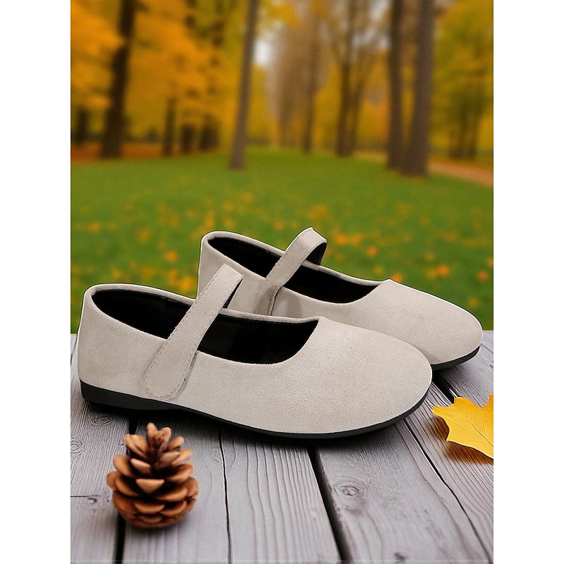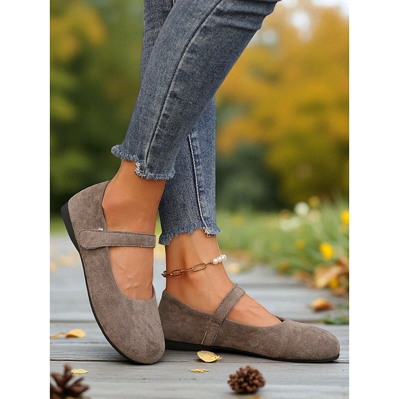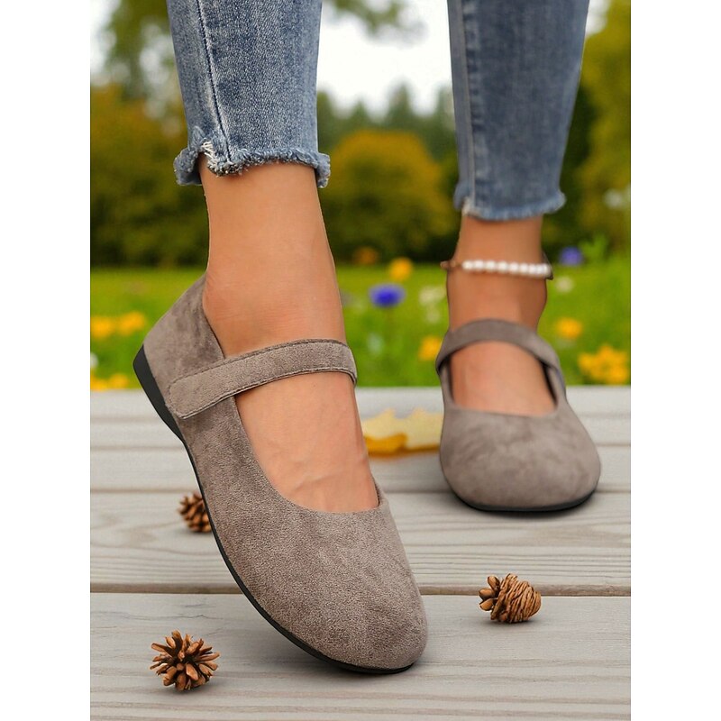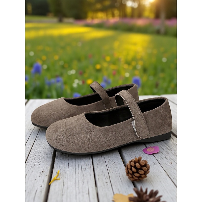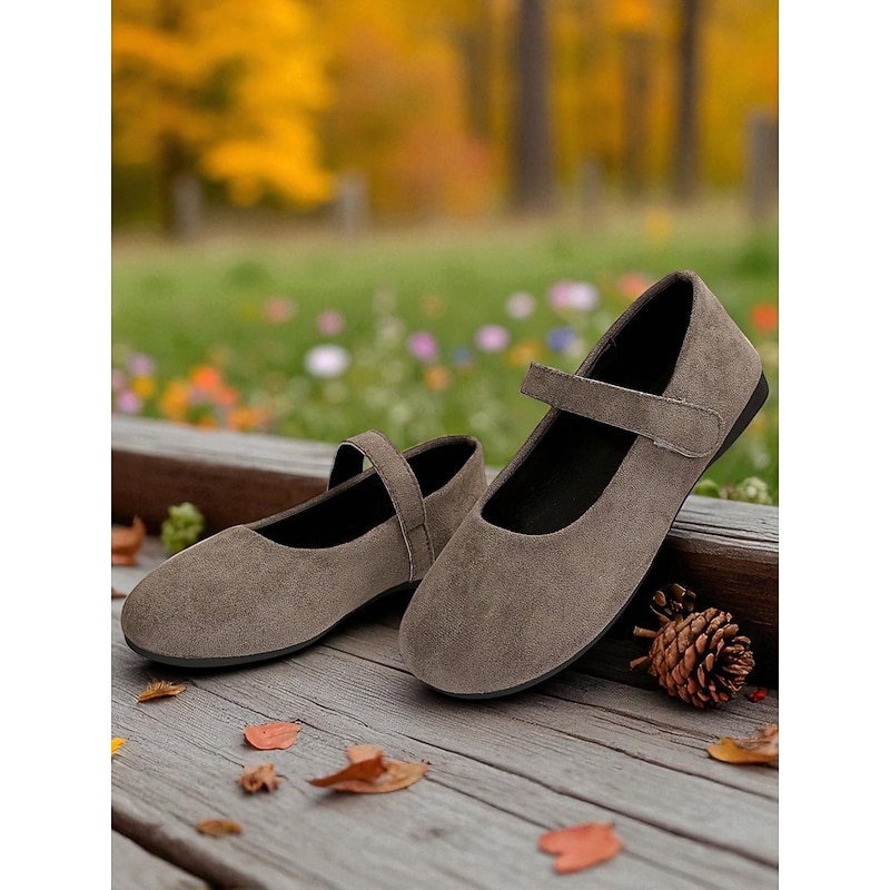 Women's Beige Wide Toe Mary Jane Flats – Soft Faux Suede Comfort Shoes for Casual Outings, Garden Strolls and Daily Wear 24