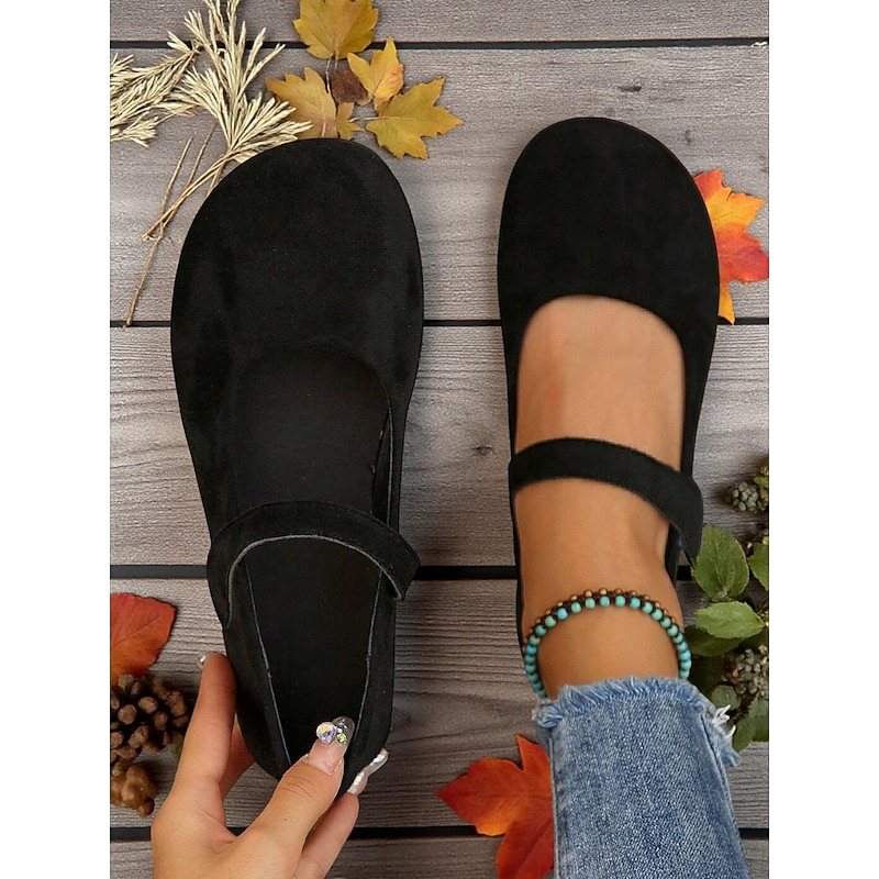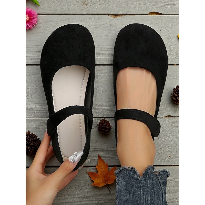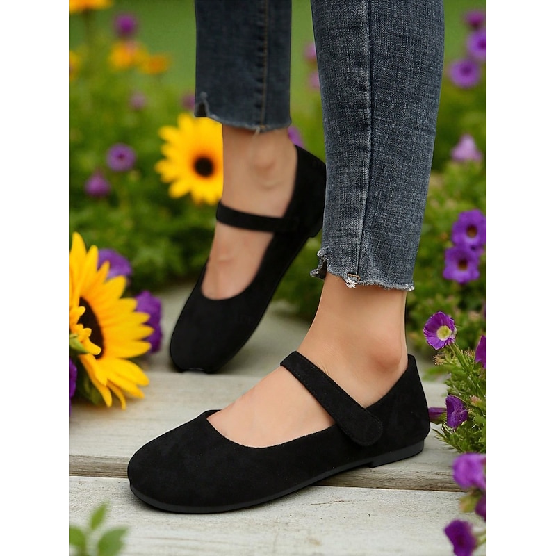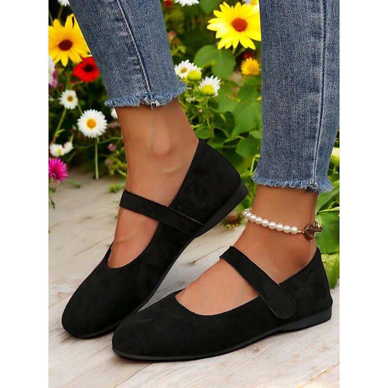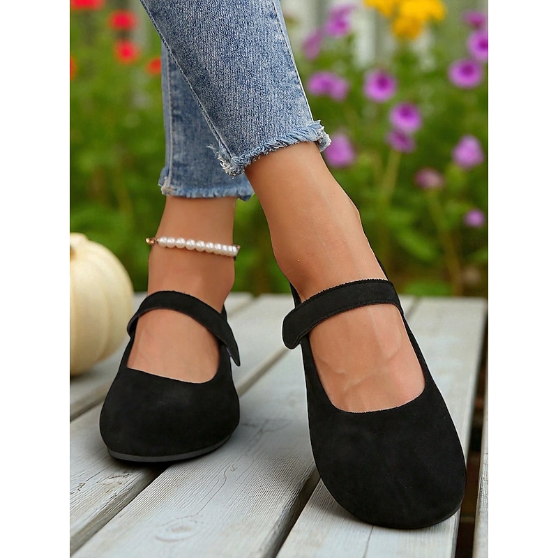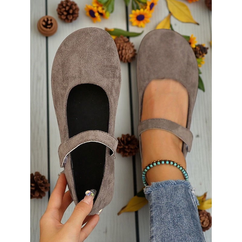 Women's Beige Wide Toe Mary Jane Flats – Soft Faux Suede Comfort Shoes for Casual Outings, Garden Strolls and Daily Wear 24