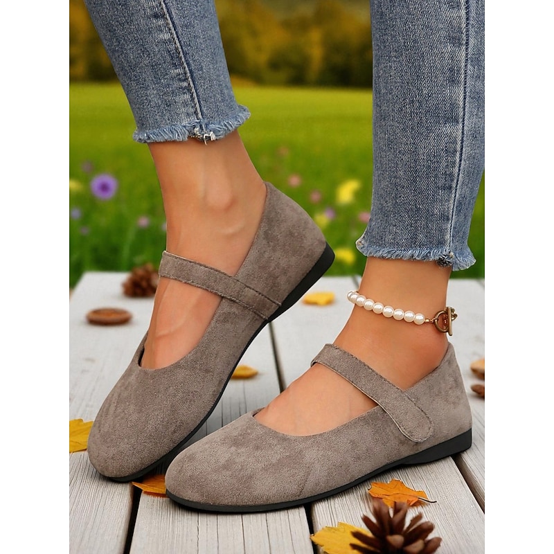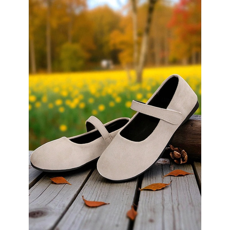 HOT ! Women's Beige Wide Toe Mary Jane Flats – Soft Faux Suede Comfort Shoes for Casual Outings, Garden Strolls and Daily Wear