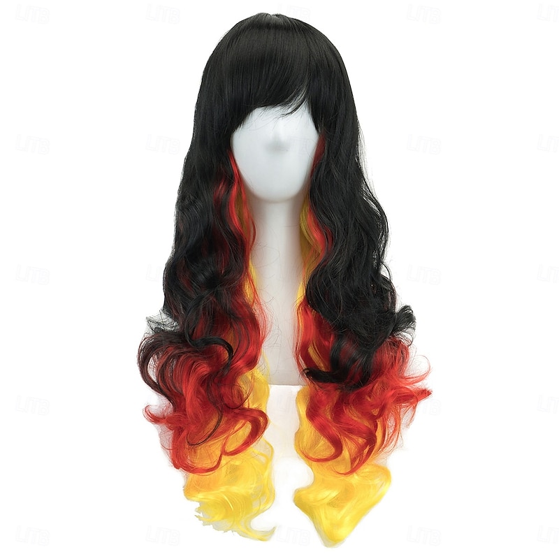 More information about Synthetic Wig Wavy Curly Weave Layered Haircut With Bangs Machine Made Wig 28 inch A1 A2 A3 A4 A5 Synthetic Hair Women's Classic Comfortable Color Gradient Multi-color