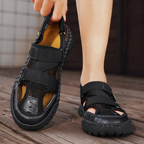 Men's Mesh Cutout Hook and Loop Fisherman Sandals Comfort Non Slip Lightweight Hand Stitching Beach Sandals Casual Wading Outdoor Sandals 5