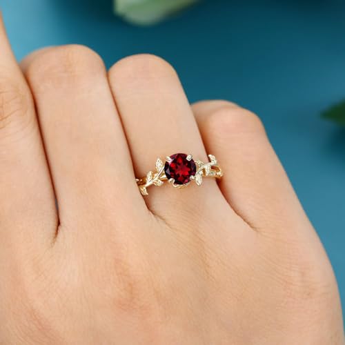 10K/14K/18K Solid Gold Vintage 1 Carat Round Gemstone Engagement Rings for Women Leaf Design Vine Art Deco Birthstone Promise Anniversary Ring for Her Wife Bridal Size 4~12 6