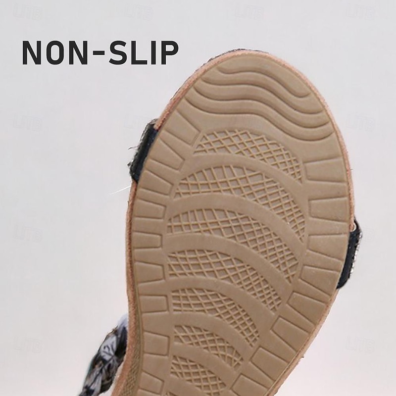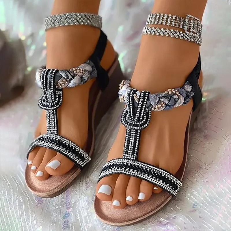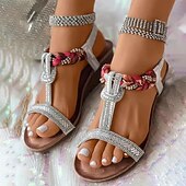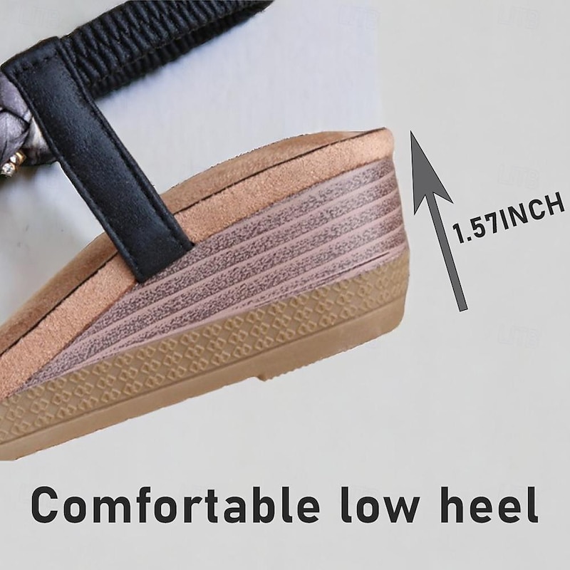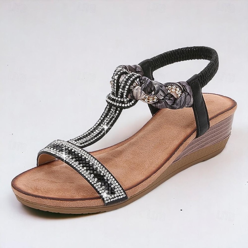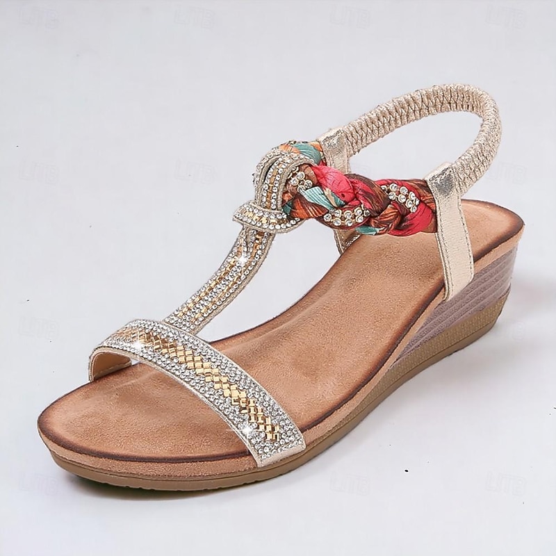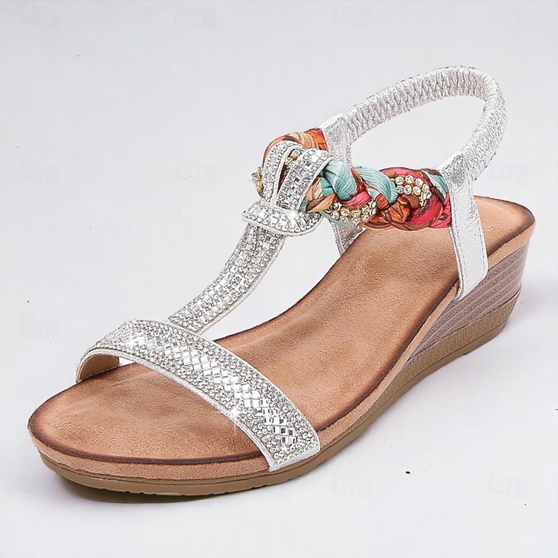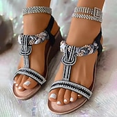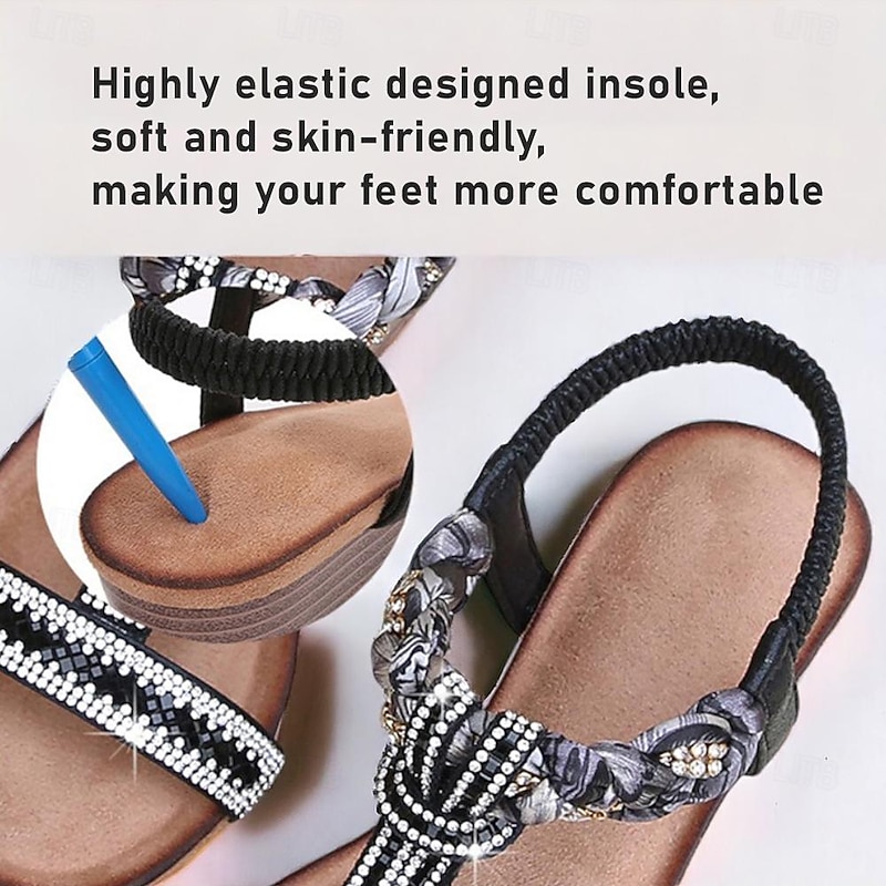 More information about Women's Sandals Boho Bohemia Beach Wedge Sandals Comfort Shoes Vacation Beach Summer Rhinestone Platform Flat Heel Elegant Bohemia Vacation Faux Leather Elastic Band Black Silver Gold
