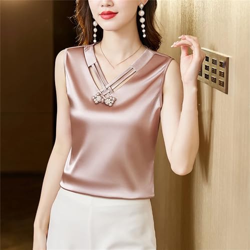 More information about Women's Silk Satin Tank Tops Sleeveless V-Neck Casual Work Office Camisole Sexy Hollow Out Casual Summer Vest Lounge Wear