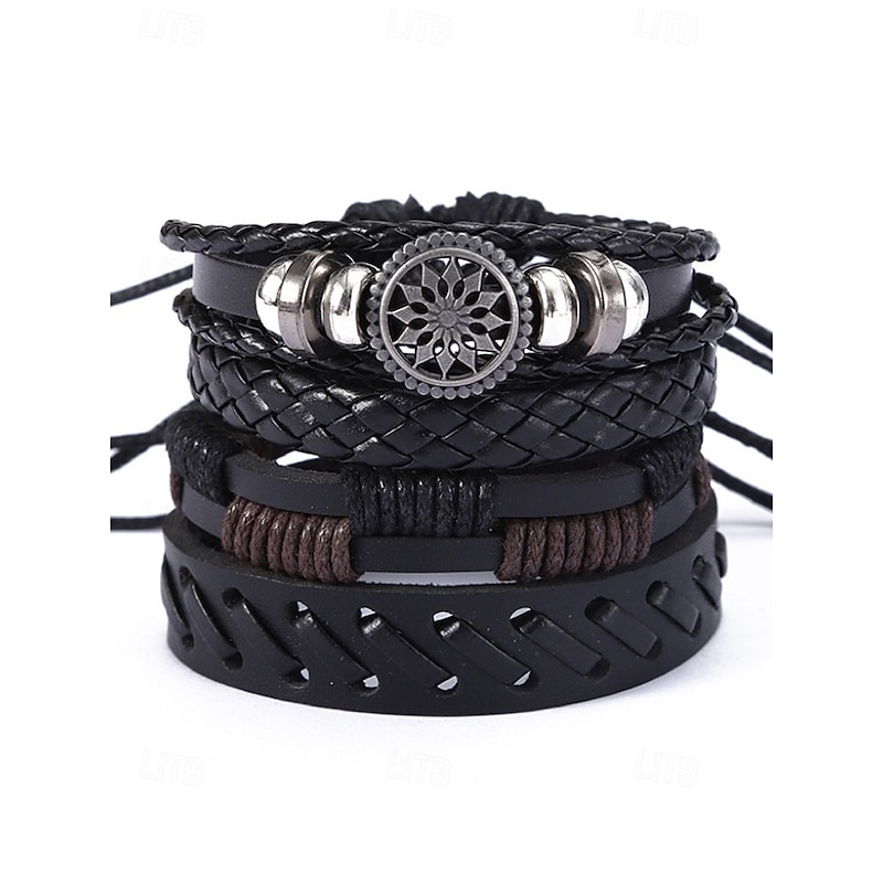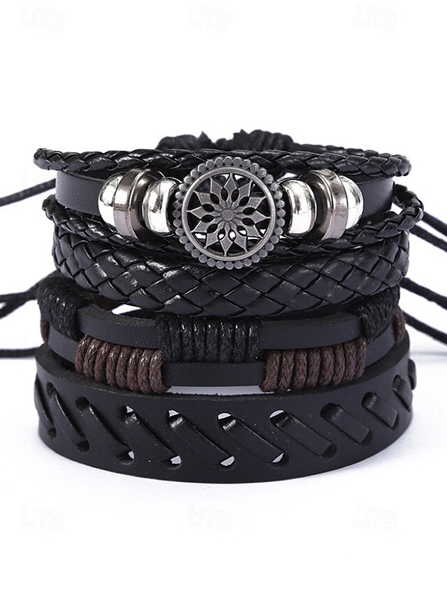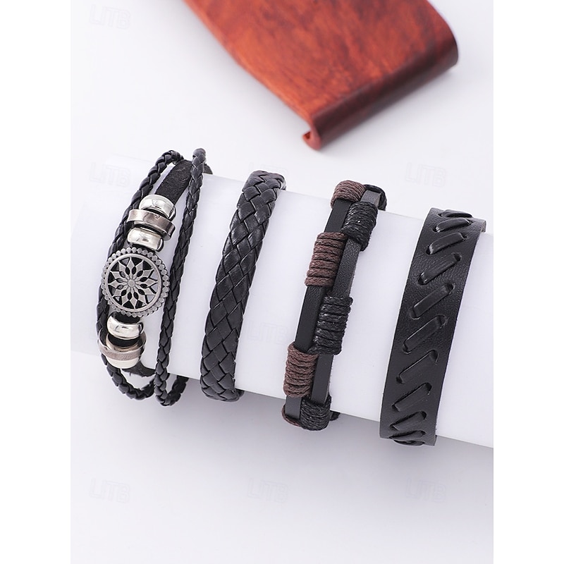 $7.99 - Men's Viking Style Multi-Layer Leather Bracelet Set - Vintage Braided Cuff with Gold Charms, Perfect for Casual Wear, Gifts and Street Style Accessories 2025. Shop for cheap Men's Jewelry online? Buy at lightinthebox.com on sale today!