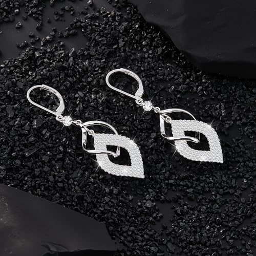 ALEXCRAFT Sterling Silver Twisted Dangle Earrings for Women Hypoallergenic Silver Spiral Drop Earring Cubic Zirconia Leverback Drop Dangle Earrings for Women Dangling Dangly Trendy Jewelry Gifts 4