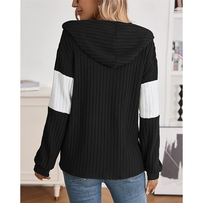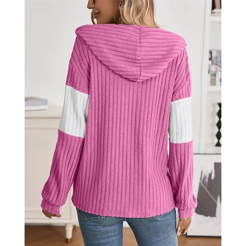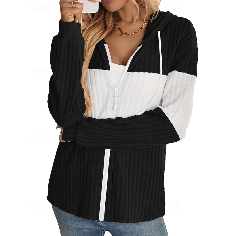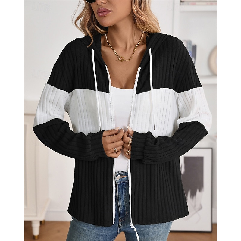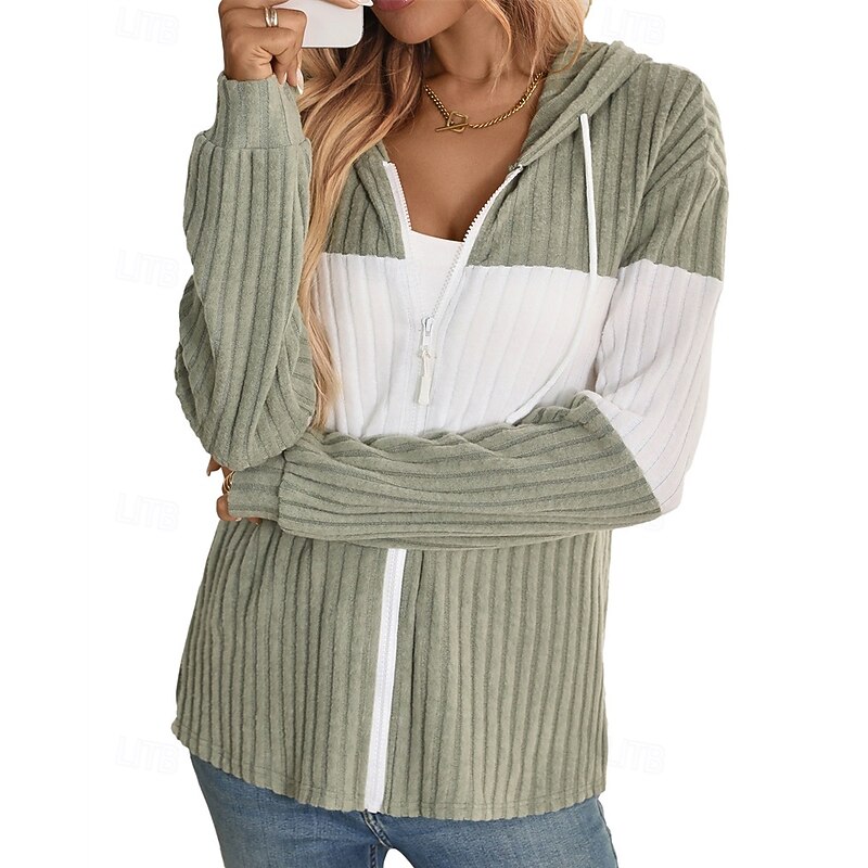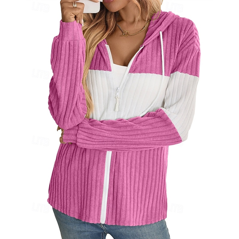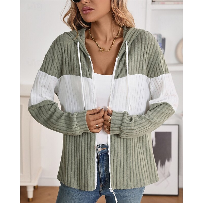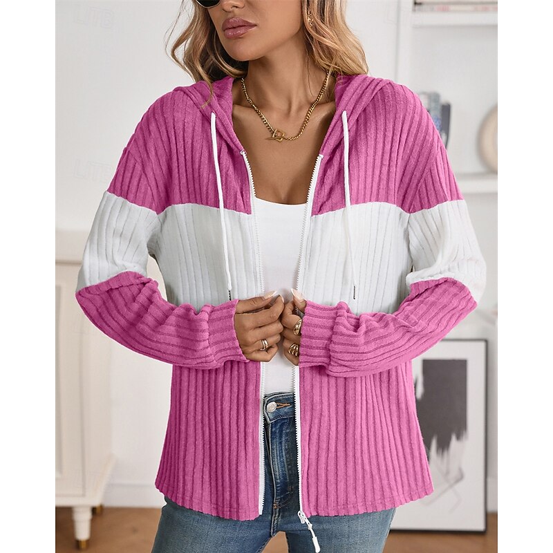 More information about Women's Winter Coat Comfortable Breathable Zipper Knit Fashion Daily Color Block Outdoor Casual Daily Zipper Regular Hooded Regular Fit Long Sleeve Outerwear Black Pink Green Spring Fall