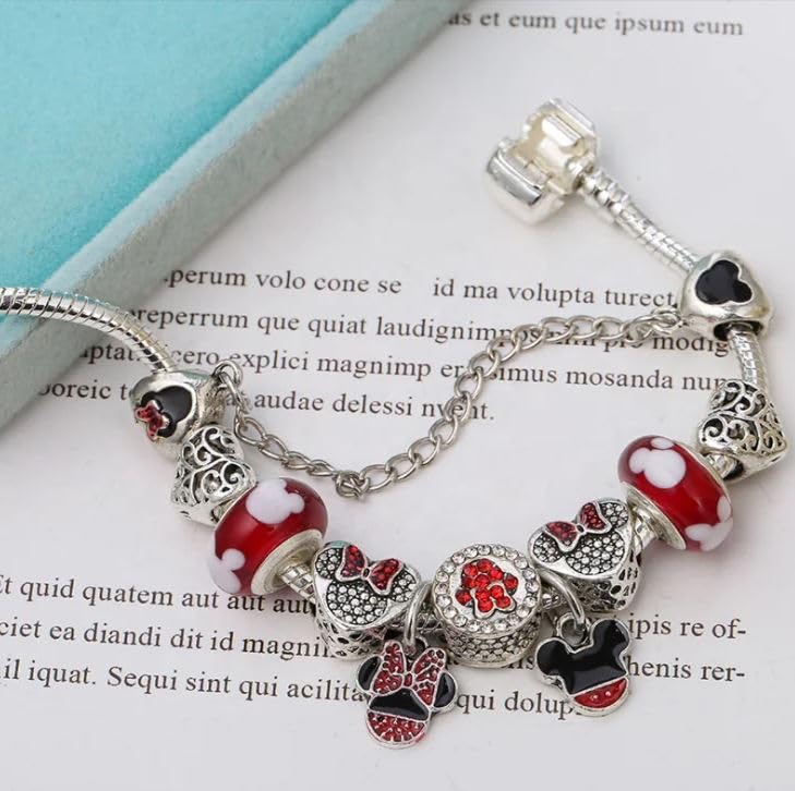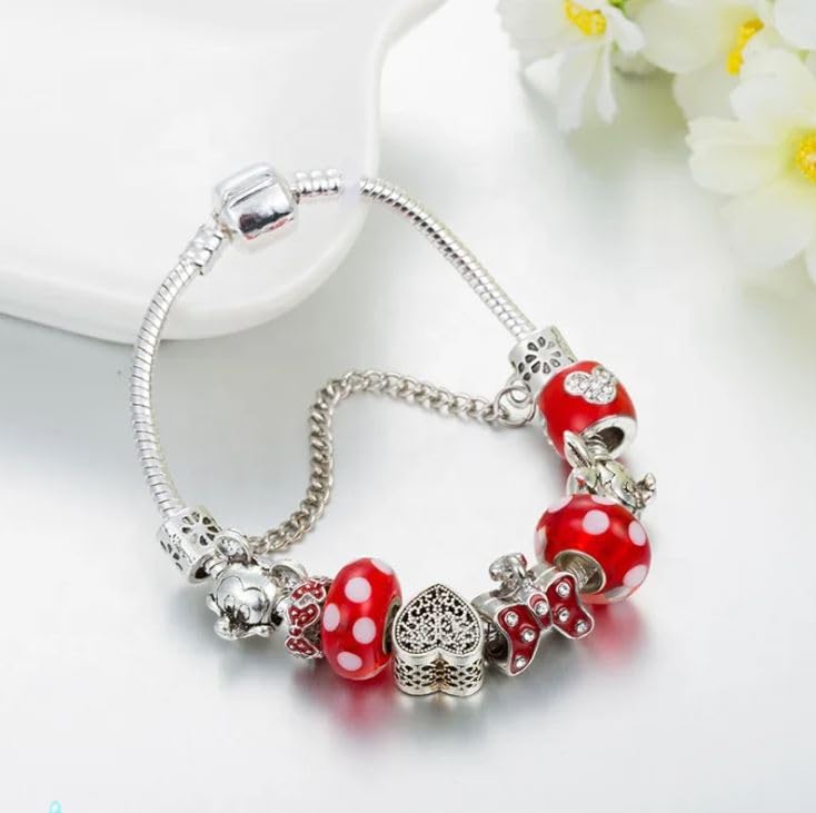 More information about Cartoon Mouse Charms Bracelet, Red Theme, 20CM, Silver, SHAPER681359412906