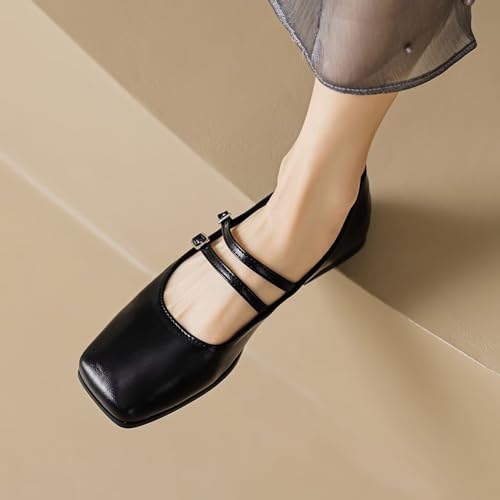 WENJIAZHIZHI Womens Squared Toe Mary Janes Adjustable Buckle Ballet Flats Solid Color Elegant Office Lady Low-Heels Wedding Dressy Shoes 6