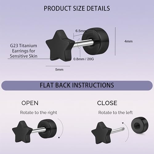 • Titanium Flat Back Earrings for Women/Men: The screw back earrings are made of implant grade F136 titanium, Hypoallergenic, medical grade, nickel free, lead-free, ensuring your skin is not irritated, safe for sensitive skin, and will never go out of style