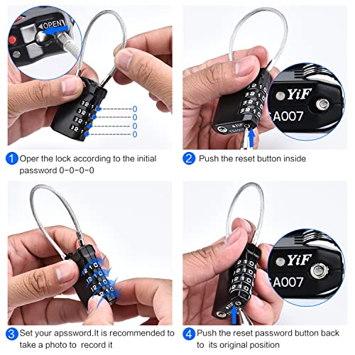 TSA Luggage Locks, 2 Packs, 4-Digit Combination Lock Security Padlock Travel Lock, with 14cm Flexible Cable for Suitcase Luggage Backpack School or Gym Cabinet, etc. (Black) 5