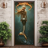 More information about Mermaid Halo Door Covers Mural Decor Door Tapestry Door Curtain Decoration Backdrop Door Banner Removable for Front Door Indoor Outdoor Home Room Decoration Farmhouse Decor Supplies