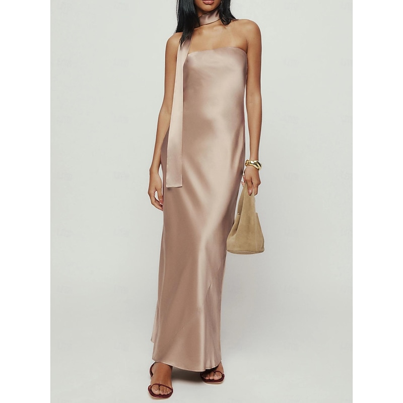 Highlights [Fabric] : Crafted from luxurious charmeuse, this dress boasts a sleek and glossy finish, ensuring a stunning reflection of light across its surface. The premium fabric provides a soft, rich feel that is perfect for elegant wear. [Silhouette] : The sheath silhouette of this gown gracefully flatters the body, offering a streamlined and sophisticated appearance. The floor-length hem adds a touch of classic elegance, ideal for formal events and black-tie occasions. [Design Highlights] : Featuring a chic strapless neckline, this dress is designed to make a statement with its understated yet refined style. The strappy embellishments add an element of intrigue, enhancing its sophisticated appeal. [Occasions] : Perfect for wedding guest attire, formal events, or any black-tie occasion, this gown exudes elegance and charm. Its timeless design allows it to be a standout choice for celebrations that require a touch of glamour and grace. [Size Notice] : Available in a broad range of sizes from US 0 to US 26W, this dress is crafted to cater to diverse body shapes and sizes. For a perfect fit, custom measurements can also be accommodated, ensuring that each wearer feels their most confident and stylish.
