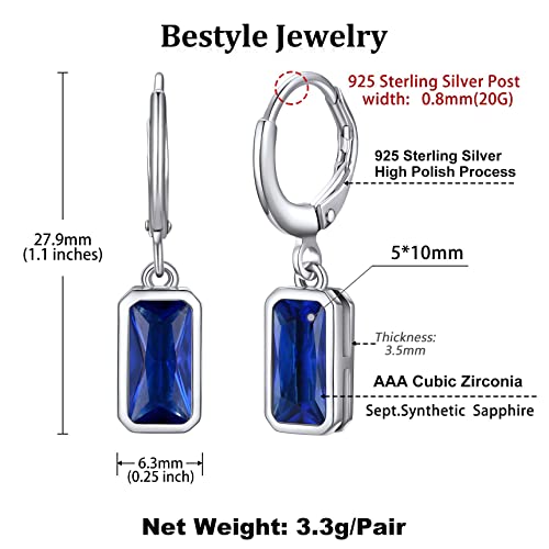 Bestyle Sterling Silver Small Dainty Birthstone Drop Earrings for Women with Rectangular Baguette Crystal & Huggie Hoop Silver Dangle Earring for Wedding Birthday Everyday Wear 6