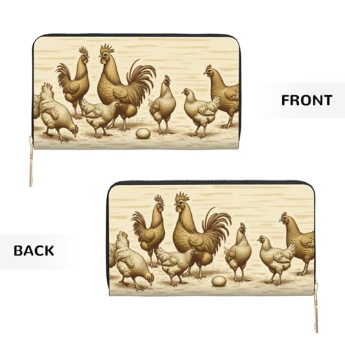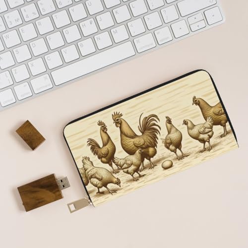 HOT ! Wallet Women - Vintage Brown Chicken Print Leather Wallet for Women with Zipper, Cute Bifold Long Ladies Wallets