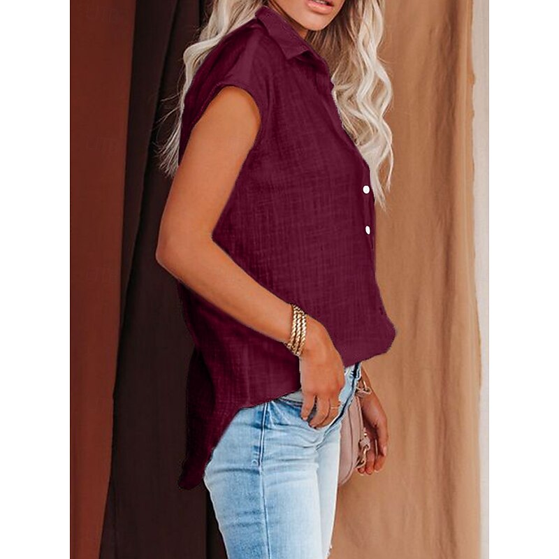 HOT ! Women's Shirt Button Down Blouse Solid Color Plain Basic Casual Short Sleeve Shirt Button Down Blouse Collar Regular Tops Daily Buttons Black White Pink Wine Summer Spring
