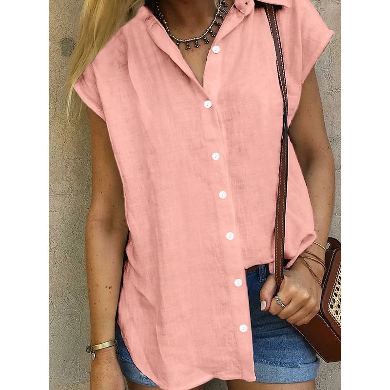 Women's Shirt Button Down Blouse Solid Color Plain Basic Casual Short Sleeve Shirt Button Down Blouse Collar Regular Tops Daily Buttons Black White Pink Wine Summer Spring 17