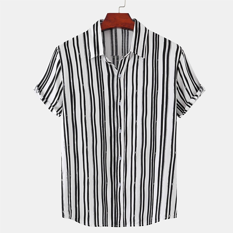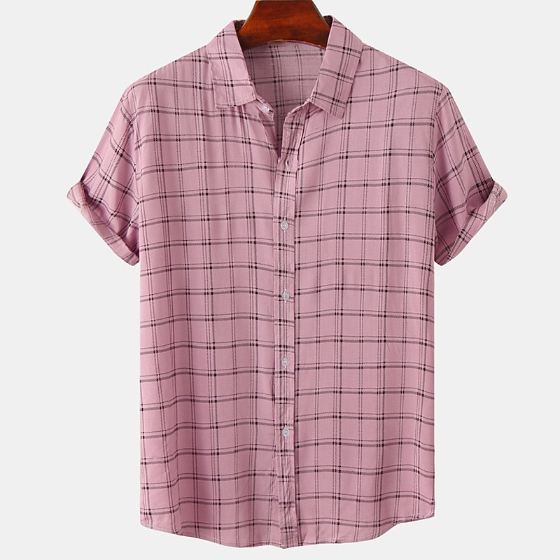 More information about Men's Shirt Summer Shirt Casual Shirt Beach Shirt Button Up Shirt Floral Shirt Black White Pink Blue Beige Short Sleeve Stripe Grid / Plaid Patterns Turndown Vacation Street Buttons Clothing Apparel