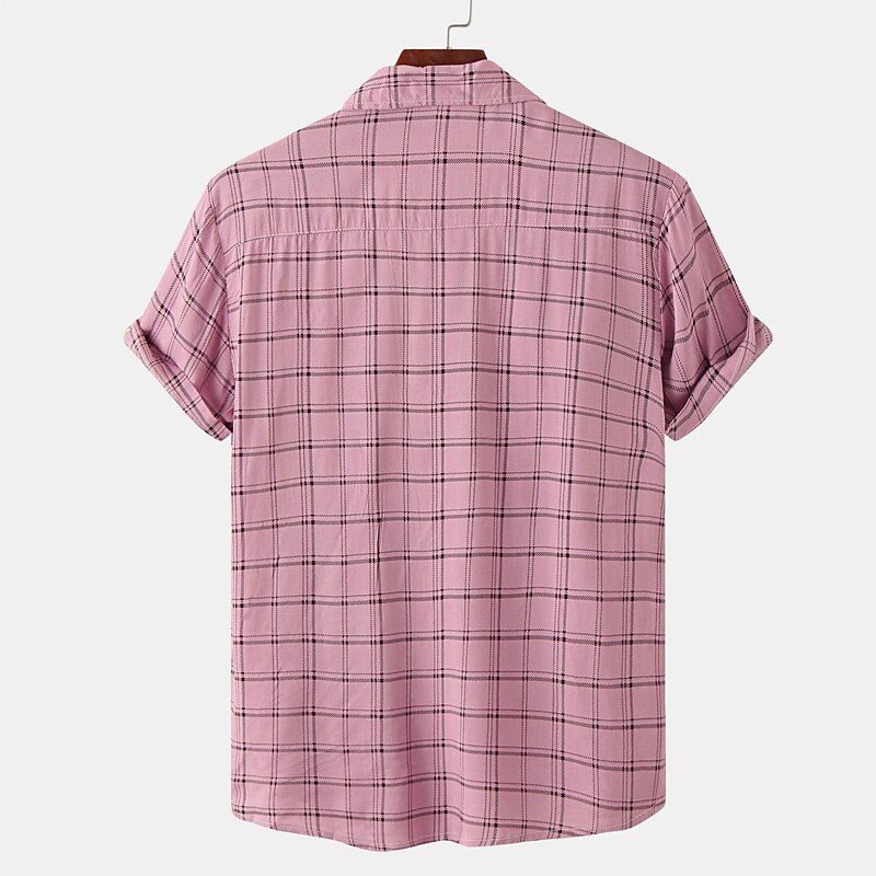 HOT ! Men's Shirt Summer Shirt Casual Shirt Beach Shirt Button Up Shirt Floral Shirt Black White Pink Blue Beige Short Sleeve Stripe Grid / Plaid Patterns Turndown Vacation Street Buttons Clothing Apparel