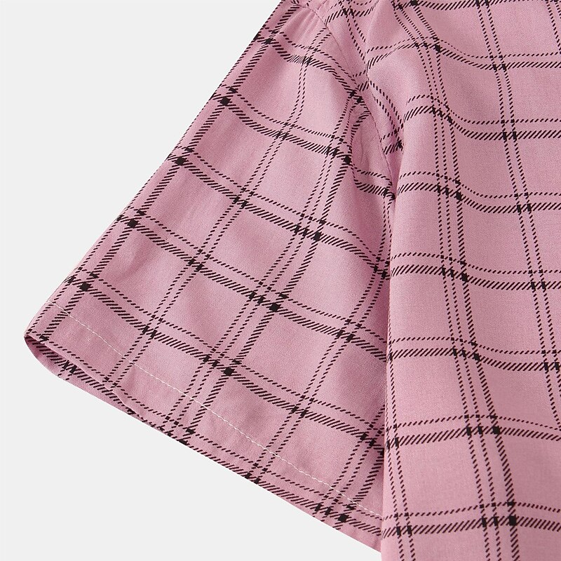 Men's Shirt Summer Shirt Casual Shirt Beach Shirt Button Up Shirt Floral Shirt Black White Pink Blue Beige Short Sleeve Stripe Grid / Plaid Patterns Turndown Vacation Street Buttons Clothing Apparel 7