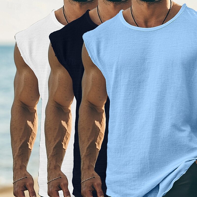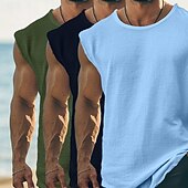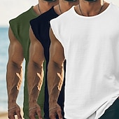 More information about Men's T Shirt Sleeveless Short Sleeve Cap Sleeve Round Neck Summer Plain Fashion Classic Casual 3-Piece Basic Plain Street Casual Sports A B C Top Tee for Men