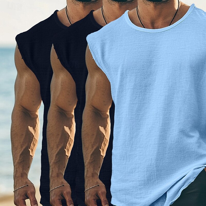 Men's T Shirt Sleeveless Short Sleeve Cap Sleeve Round Neck Summer Plain Fashion Classic Casual 3-Piece Basic Plain Street Casual Sports A B C Top Tee for Men 9