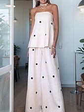 More information about Women's Active Fashion Blouse Pants Sets Sleeveless Off Shoulder Polka Dot Backless Daily Casual Daily White Summer Regular Fit
