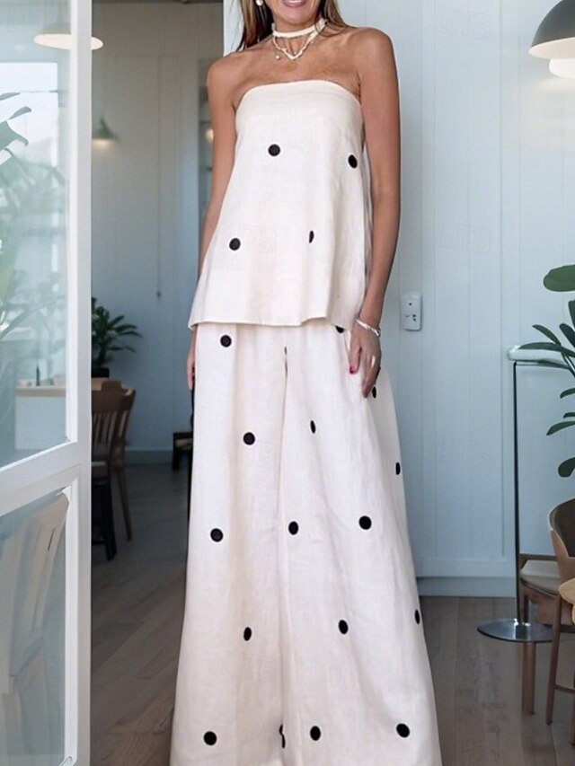 HOT ! Women's Active Fashion Blouse Pants Sets Sleeveless Off Shoulder Polka Dot Backless Daily Casual Daily White Summer Regular Fit