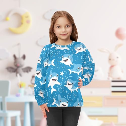 JUNZAN Cute Little Shark Stars Blue Kids Girls Hooded Sweatshirt Fleece Outerwear for Kids Party 4T 6