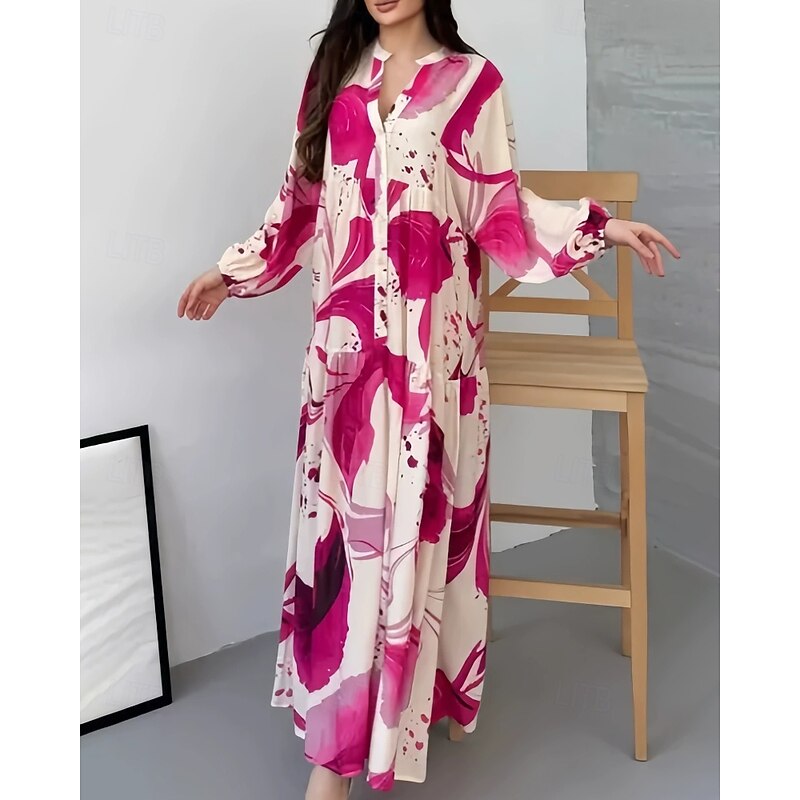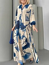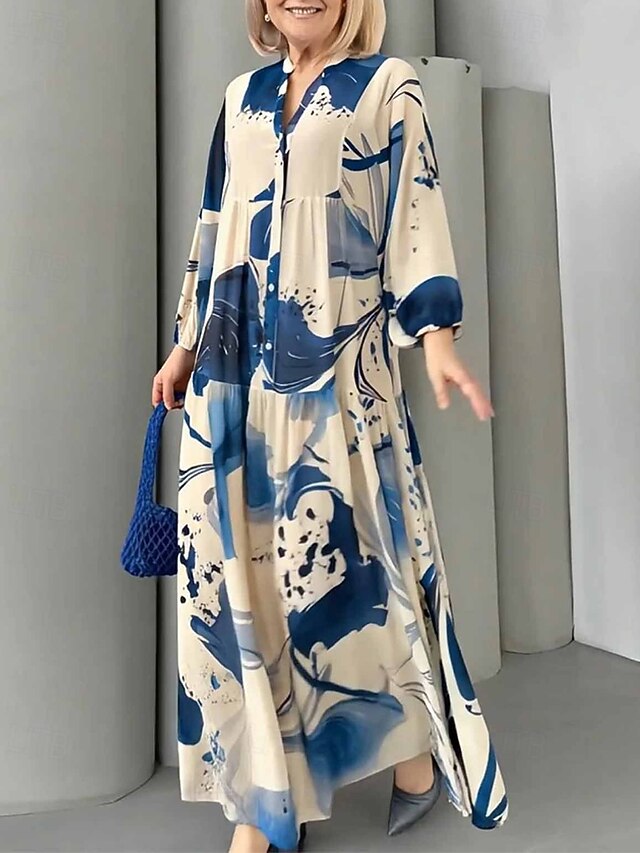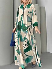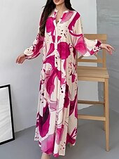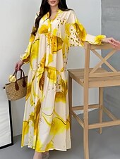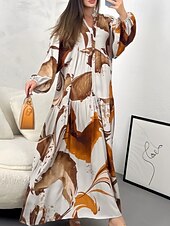 More information about Women's Long Dress Maxi Dress Floral Dress Print Dress Modern Outdoor Vacation Going out Regular Fit Floral Long Sleeve V Neck Yellow Blue Brown Green Spring Fall