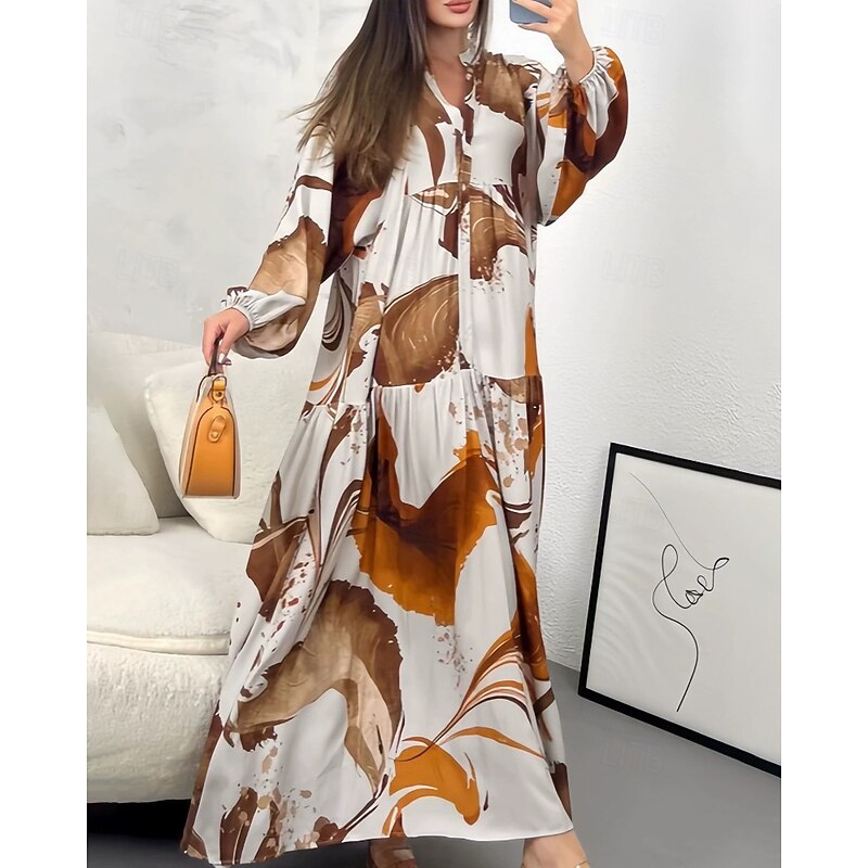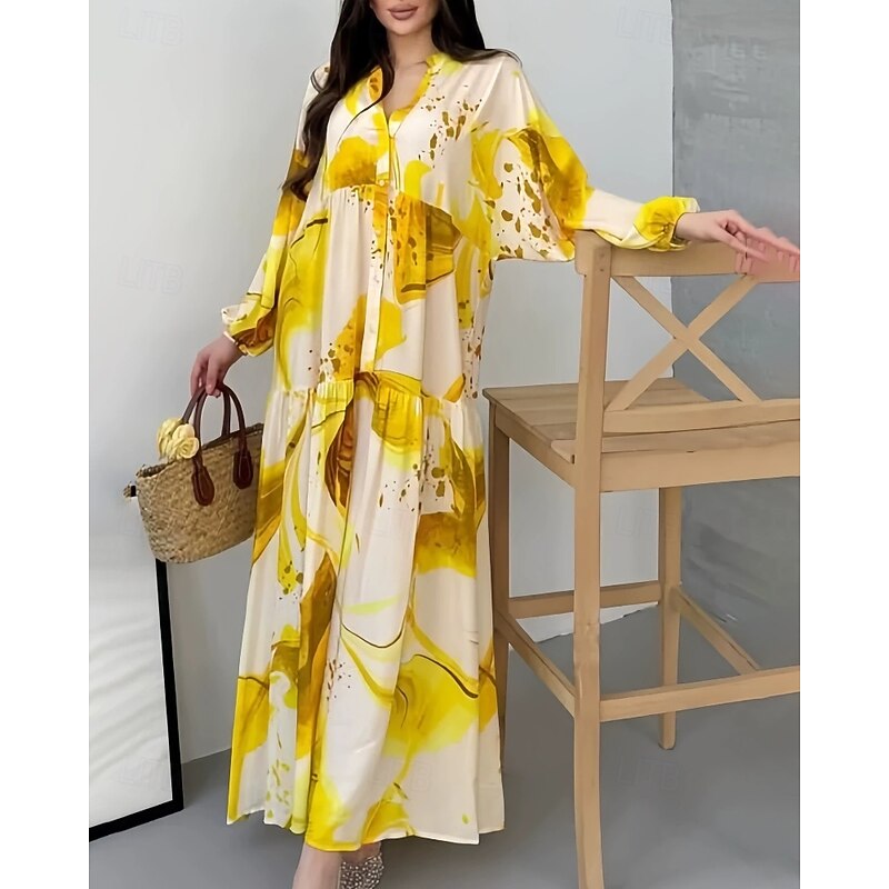 HOT ! Women's Long Dress Maxi Dress Floral Dress Print Dress Modern Outdoor Vacation Going out Regular Fit Floral Long Sleeve V Neck Yellow Blue Brown Green Spring Fall