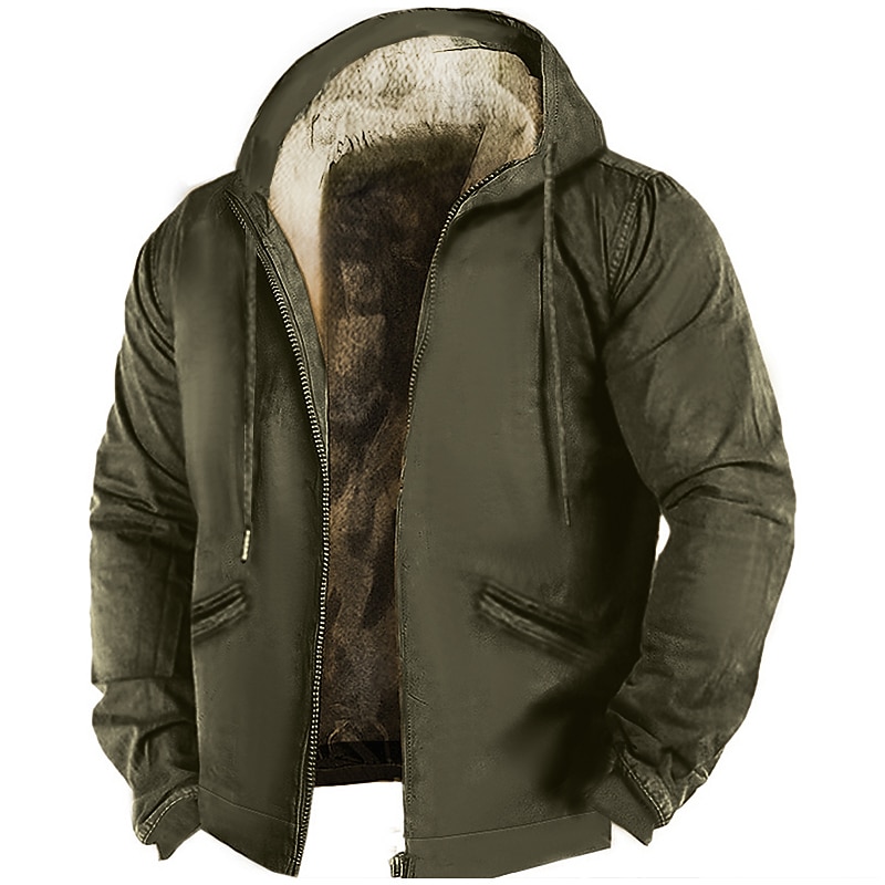 More information about Men's Sherpa Linend Brown Green Khaki Gray Hooded Graphic Prints Zipper Pocket Sports & Outdoor Daily Sports 3D Print Fleece Streetwear Designer Casual Winter Clothing Apparel Hoodies Sweatshirts