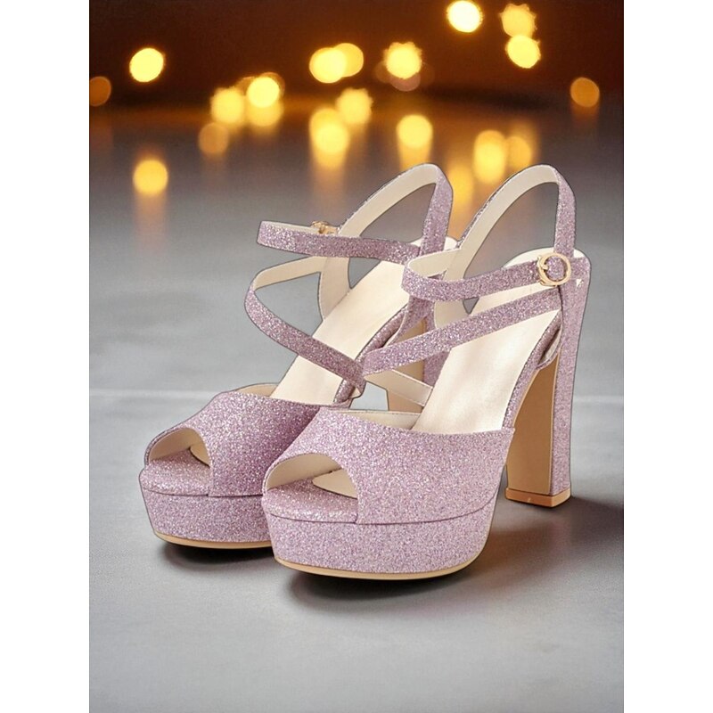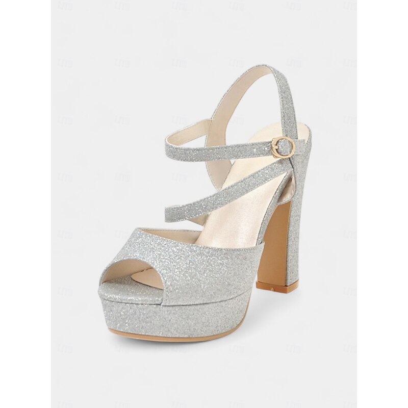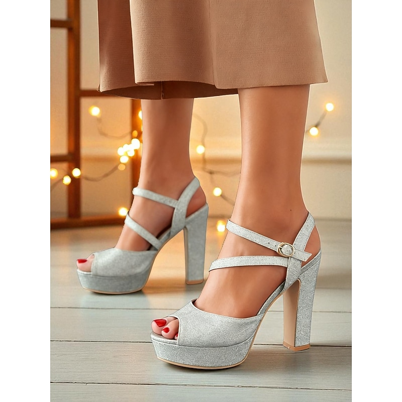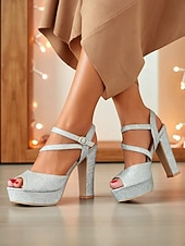 Women's Glitter Platform High Heel Sandals with Ankle Strap - Elegant Party Shoes for Nightlife, Christmas Celebrations & Holiday Events 1