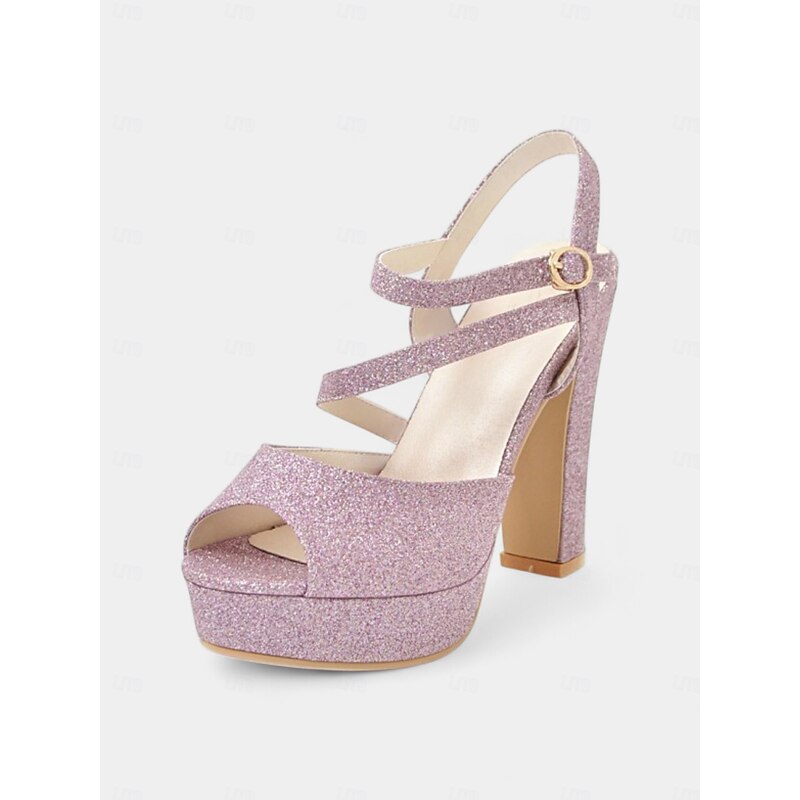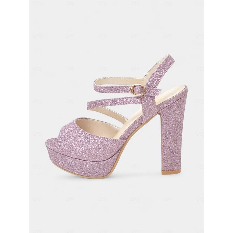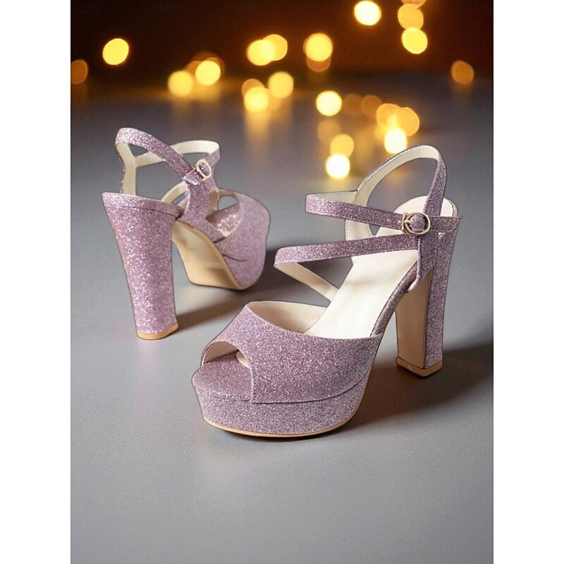 Highlights - Luxurious upper materials: Sparkling Glitter - Comfortable lining materials: Synthetic Leather - Stylish block heel for added support - Trendy open toe design - Durable rubber outsole for long-lasting wear