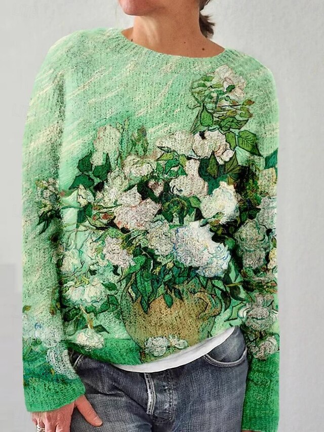 More information about Women's Sweater Casual Soft Striped Ribbed Crew Neck Knitted Print Long Sleeve Regular Tops Knit Outdoor Daily Weekend Pink Blue Fall Winter