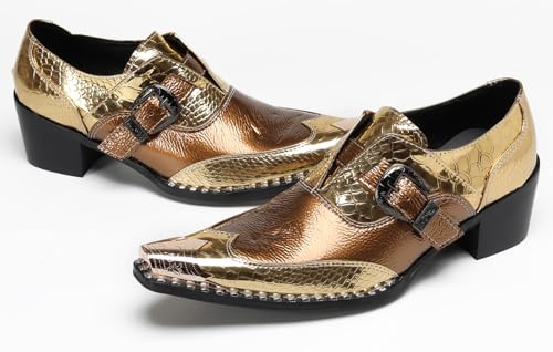 Santimon Men’s Slip-On Dress Shoes Genuine Leather Loafers – Metal Toe Mocasines with Gold Buckle for Formal Wedding & Casual Party Disco 7