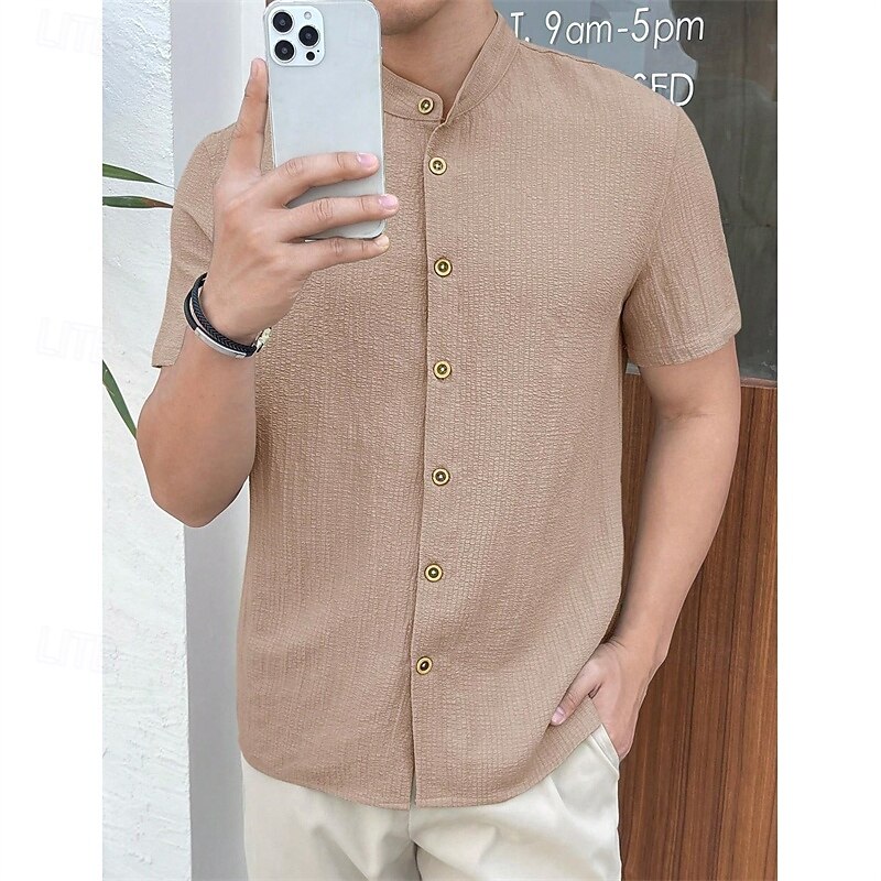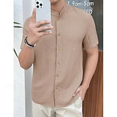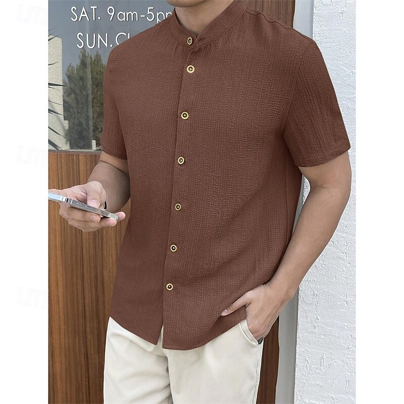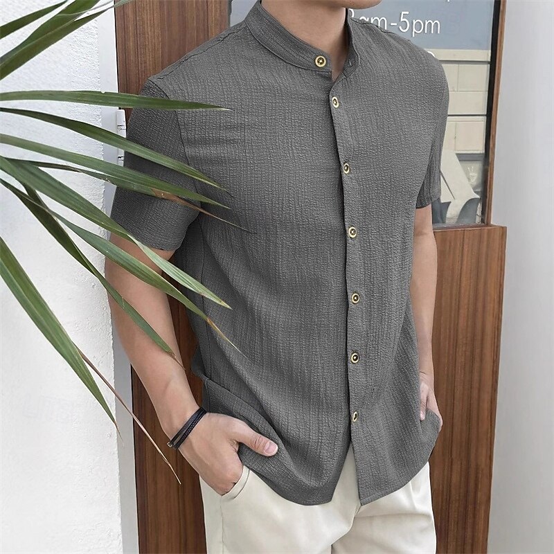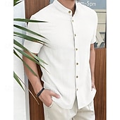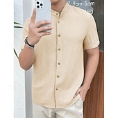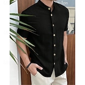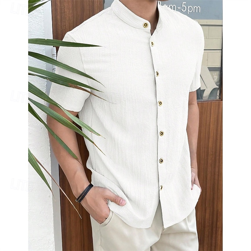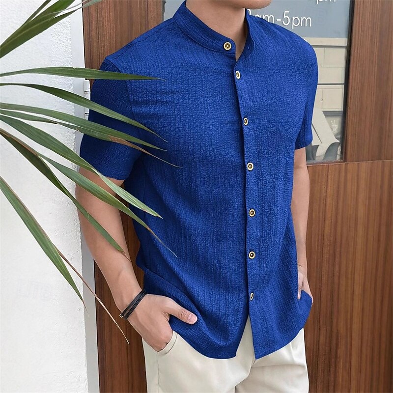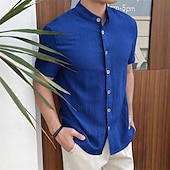 More information about Men's Shirt Summer Shirt Casual Shirt Beach Shirt Button Up Shirt Black White Red Royal Blue Sky Blue Short Sleeve Plain Grandad Collar Standing Collar Vacation Hawaiian Clothing Apparel Polyester