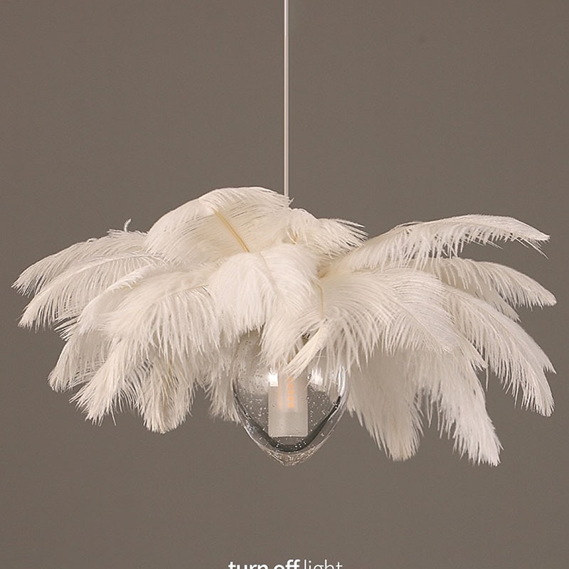 LED Pendant Light Chandelier 35cm 1-Light White Ostrich Feather Bouquet Pendant Light Romantic Mounted Lighting Fixture for Restaurant Bedroom 11