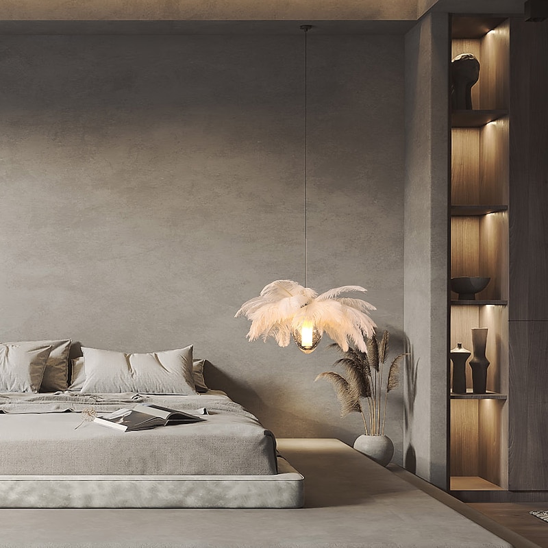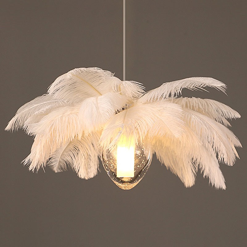 LED Pendant Light Chandelier 35cm 1-Light White Ostrich Feather Bouquet Pendant Light Romantic Mounted Lighting Fixture for Restaurant Bedroom 13