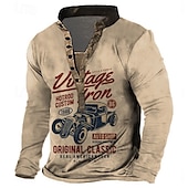 More information about Men's Car T Shirt Henley Shirt Long Sleeve 3D Print Retro Vintage Casual Vacation Daily Going out Summer Beige Grey Henley Henley T-Shirt