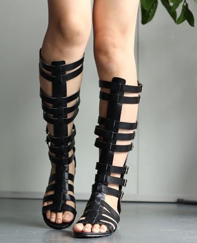 More information about Hanfike Flat Knee High Gladiator Sandals for Women Summer Cut out Shoes with Buckle LB028