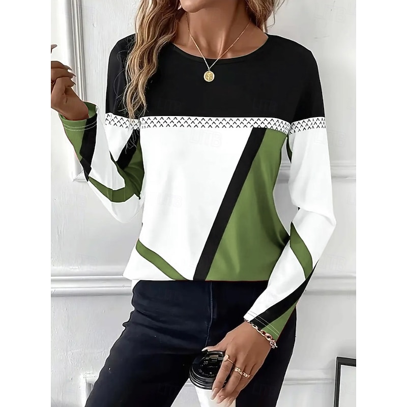 Easter Women's T shirt Long Sleeve Crew Neck Long Sleeve Tunic Graphic Plaid Vintage Stylish Classic Round Neck Regular Tops Daily Print Black Red Blue Purple Brown Fall Prefall 11